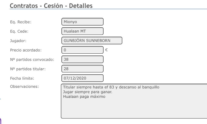 Hola, solicito la devolución de mis tres jugadores cedidos al Mionyo por incumplimiento de contrato, ahi les dejo los contratos y luego las explicaciones::