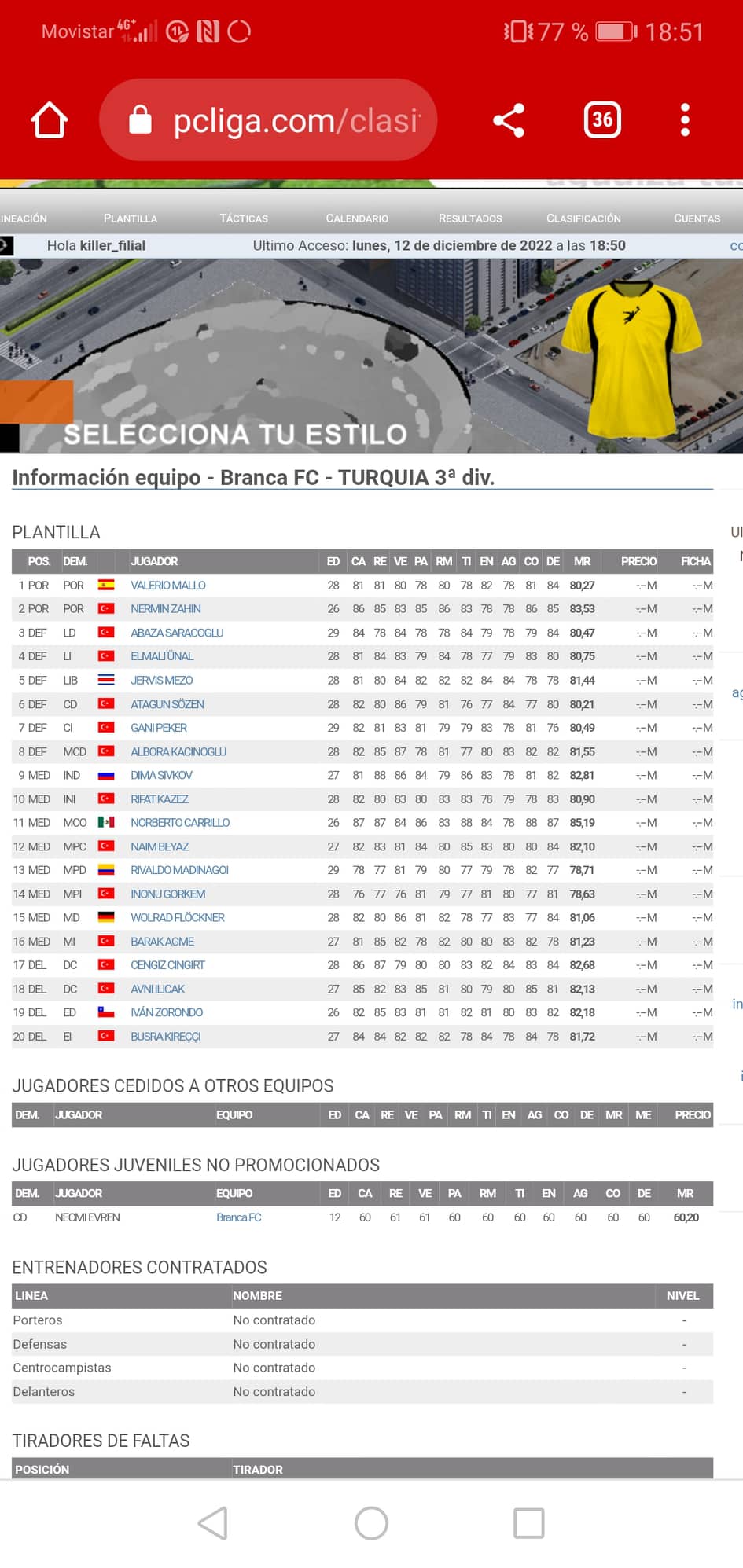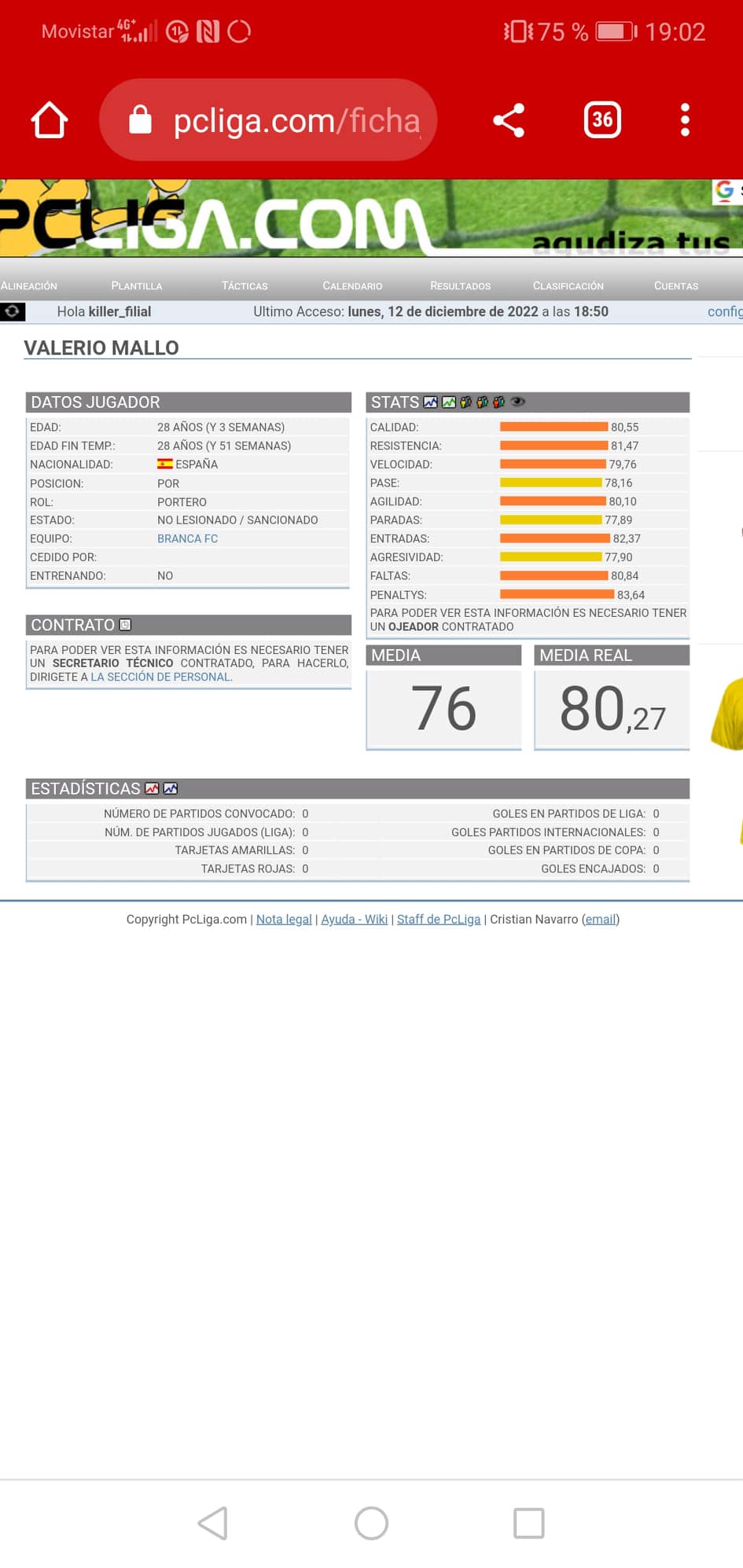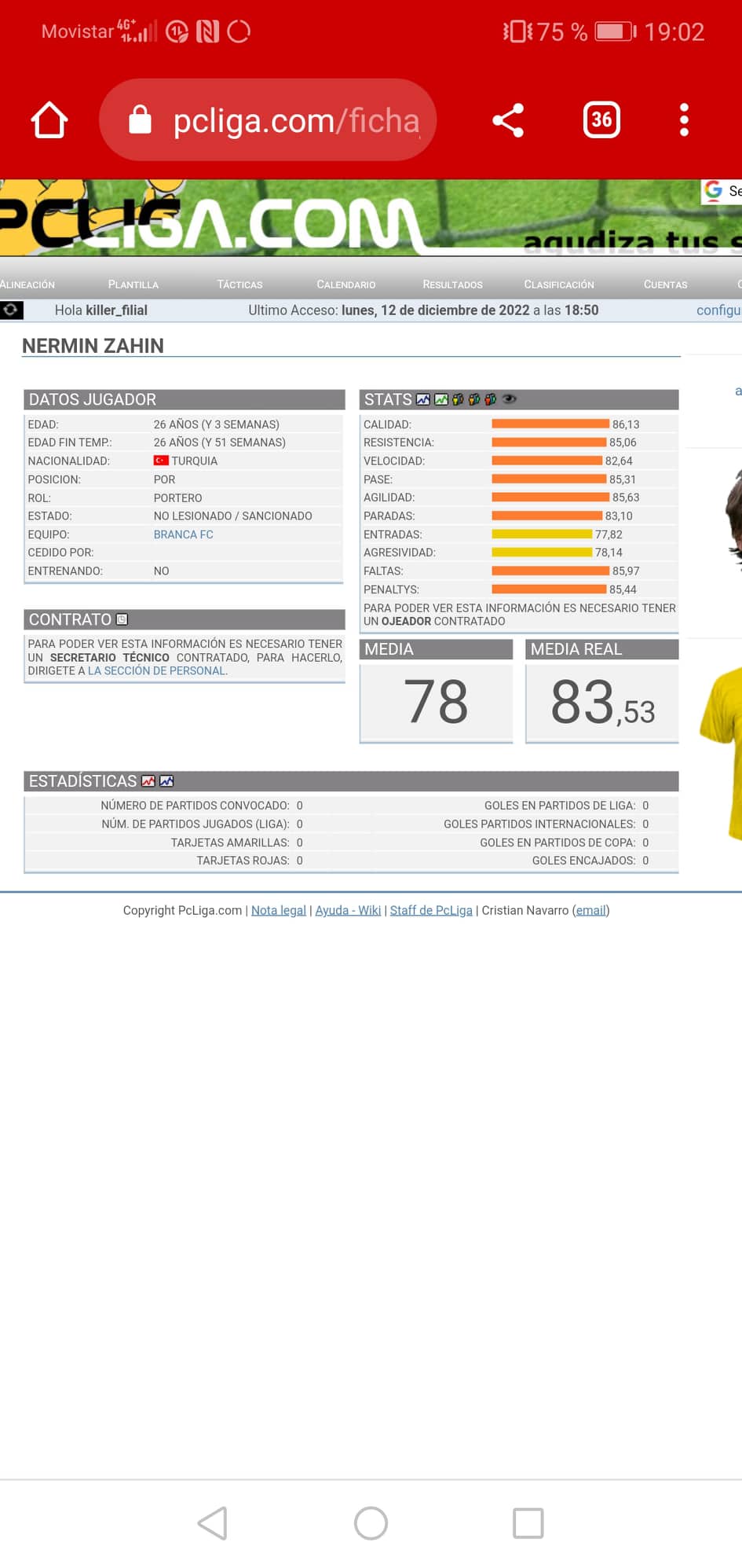Supongo q algo pasaría en el último partido de la temporada pasada q lo dejo sin portero y como los botts sin cedidos no suelen hacer cambios hasta q los jugadores están muy bajos de EF pues eso habrá ocasionado q jugara sin portero esta primera semana He mirado si tactica y para hoy ha realizado algunos cambios en la alineacion, uno de ellos es poner al portero Saludos |