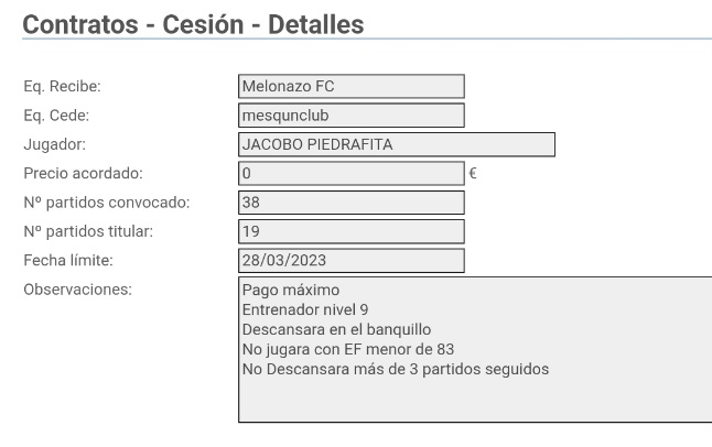 Hola buenas tardes como comenta el compañero ruli solicito la devolucion de mi jugador cedido al equipo melonazo por no conectarse dicho manager al juego.